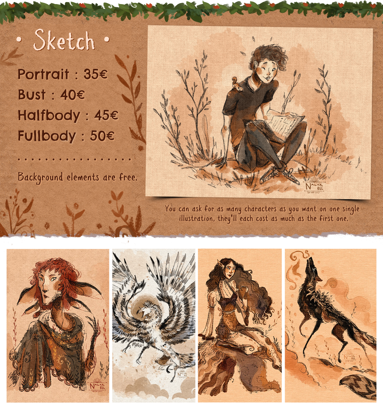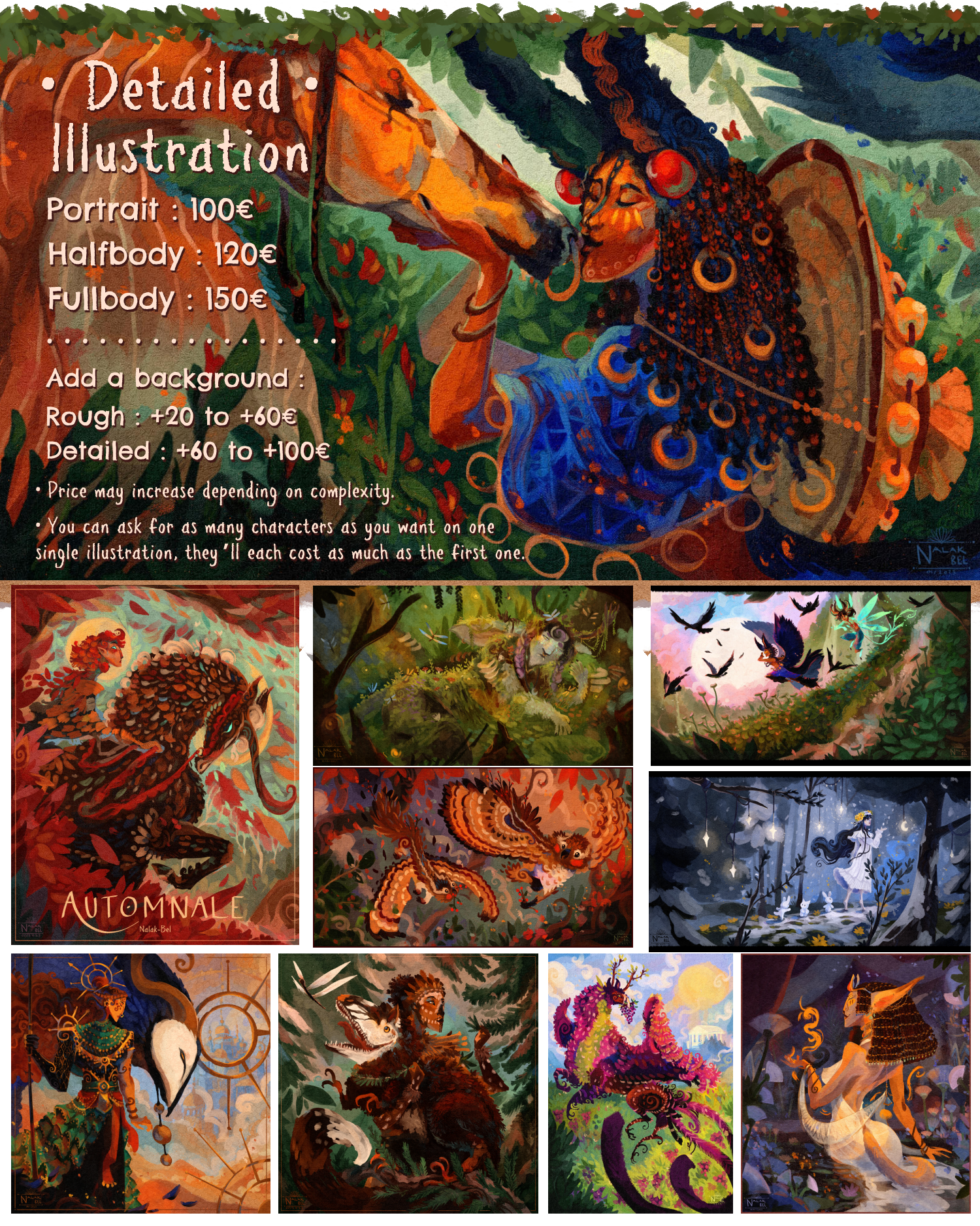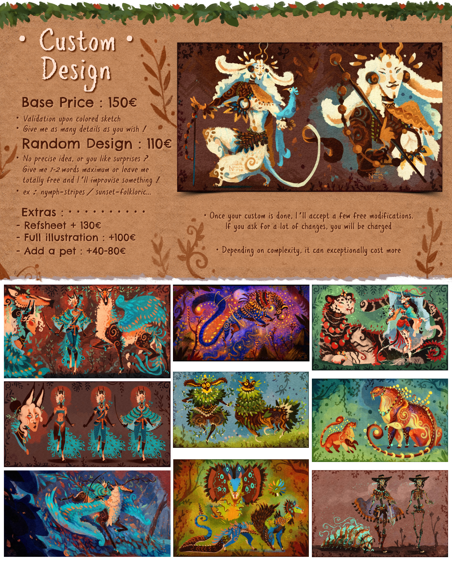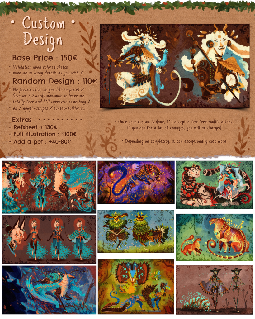 I will draw :![]() • Any Animal or Creature • Humans, Humanoids, Anthros • Fantasy and non-fantasy themes | I won’t draw : • NSFW • Dragons • Demonic themes |